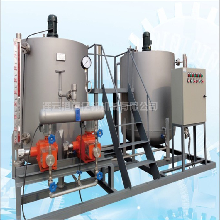 加藥裝置的單元組合形式主要視機(jī)組容量大小,鍋爐配置的方式(二爐共用一套或單爐單套等),自動(dòng)化水平的高低(自動(dòng)或手動(dòng)控制),加藥泵種類的選用